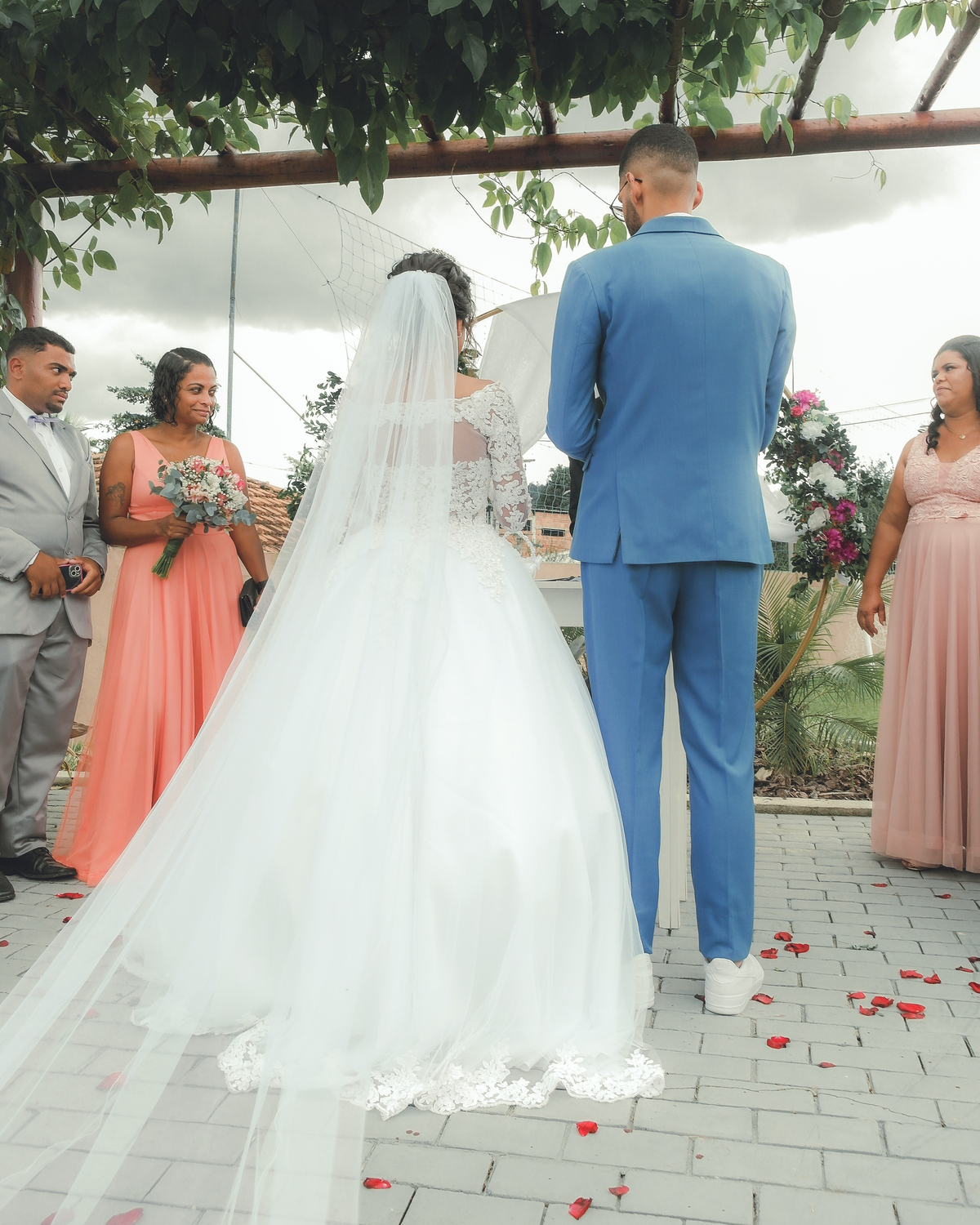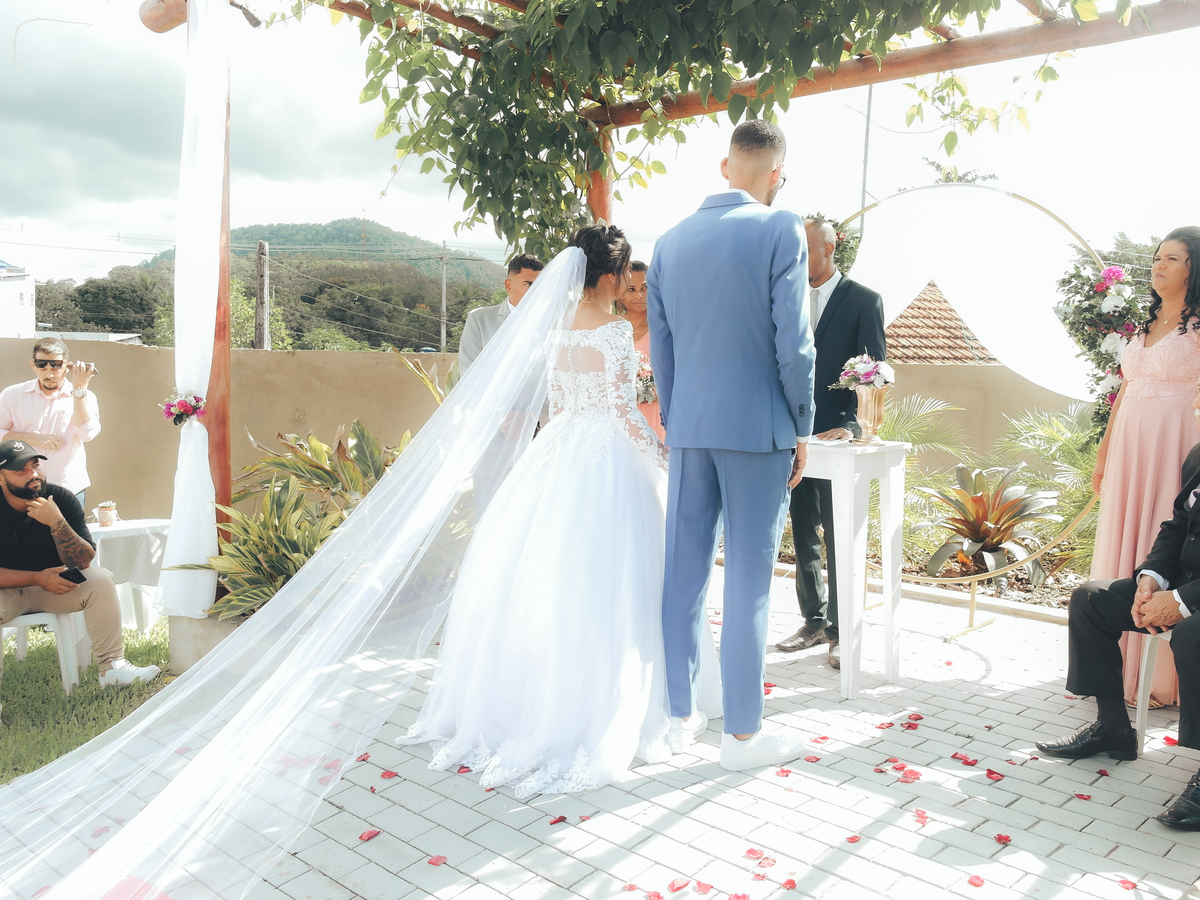 maricáRj noivosnoAltar casamentoRj cerimônia VestidoBrancoTernoAzul
