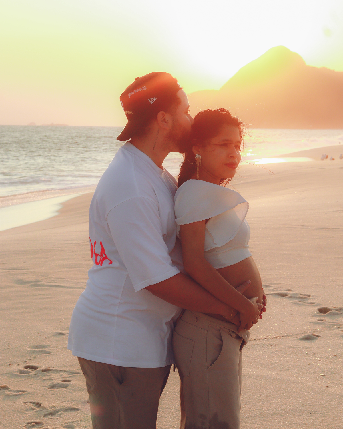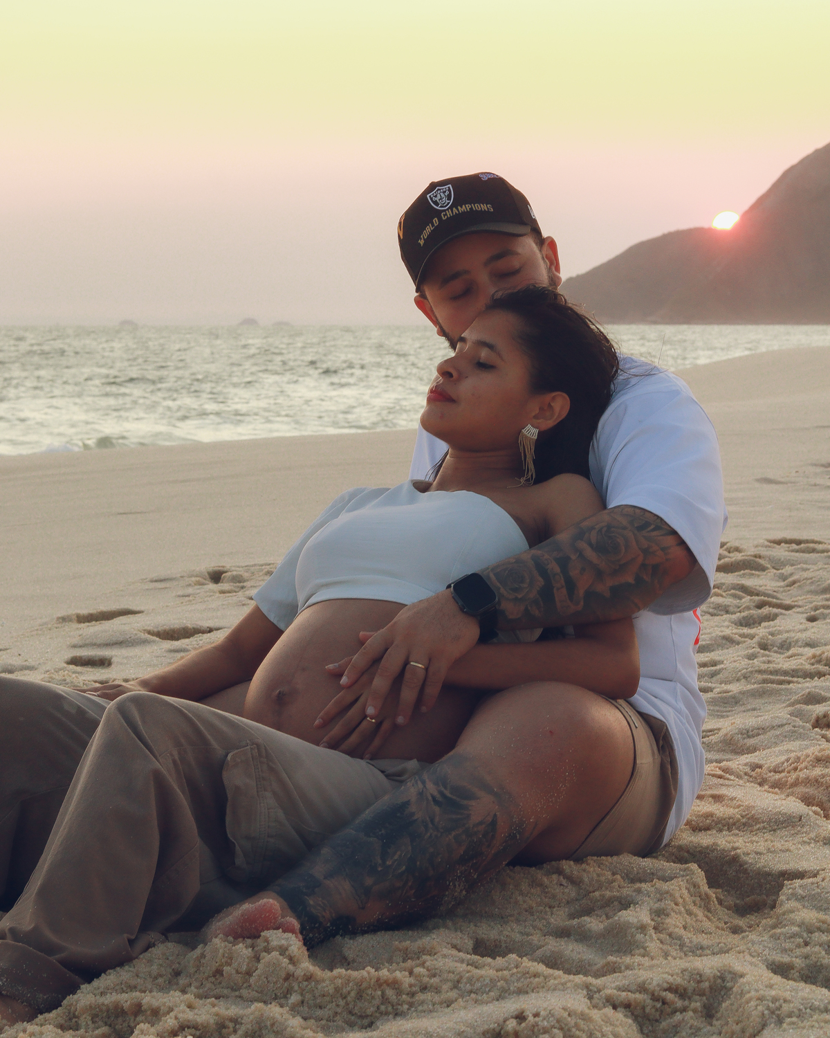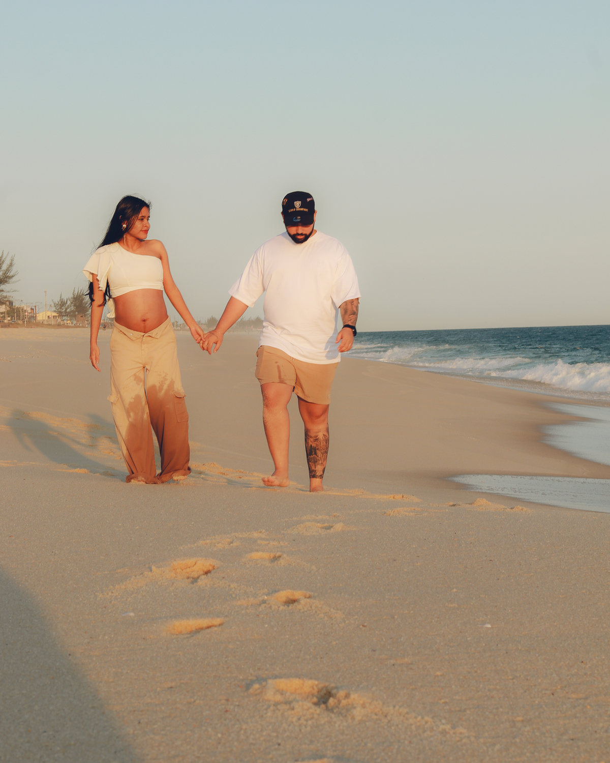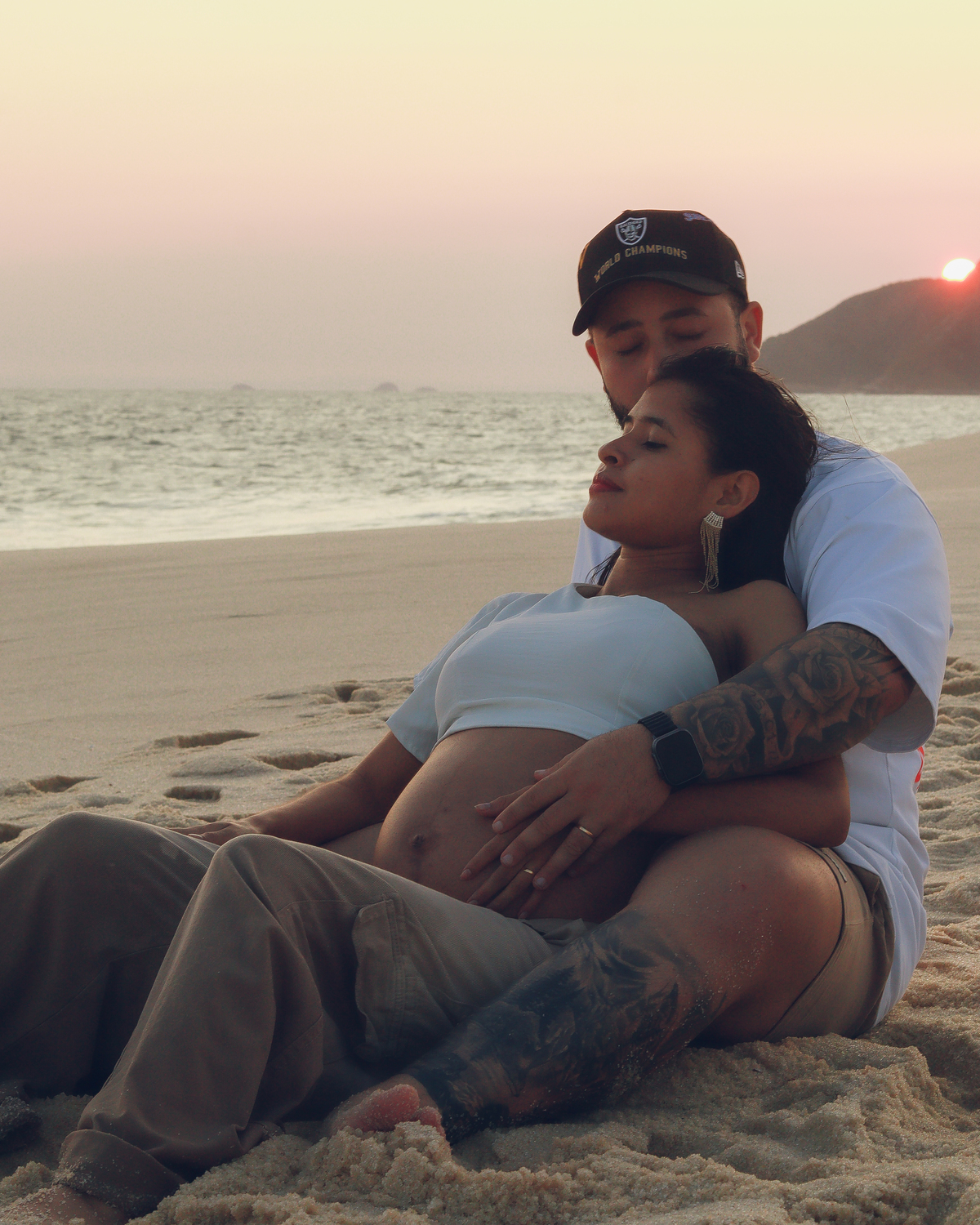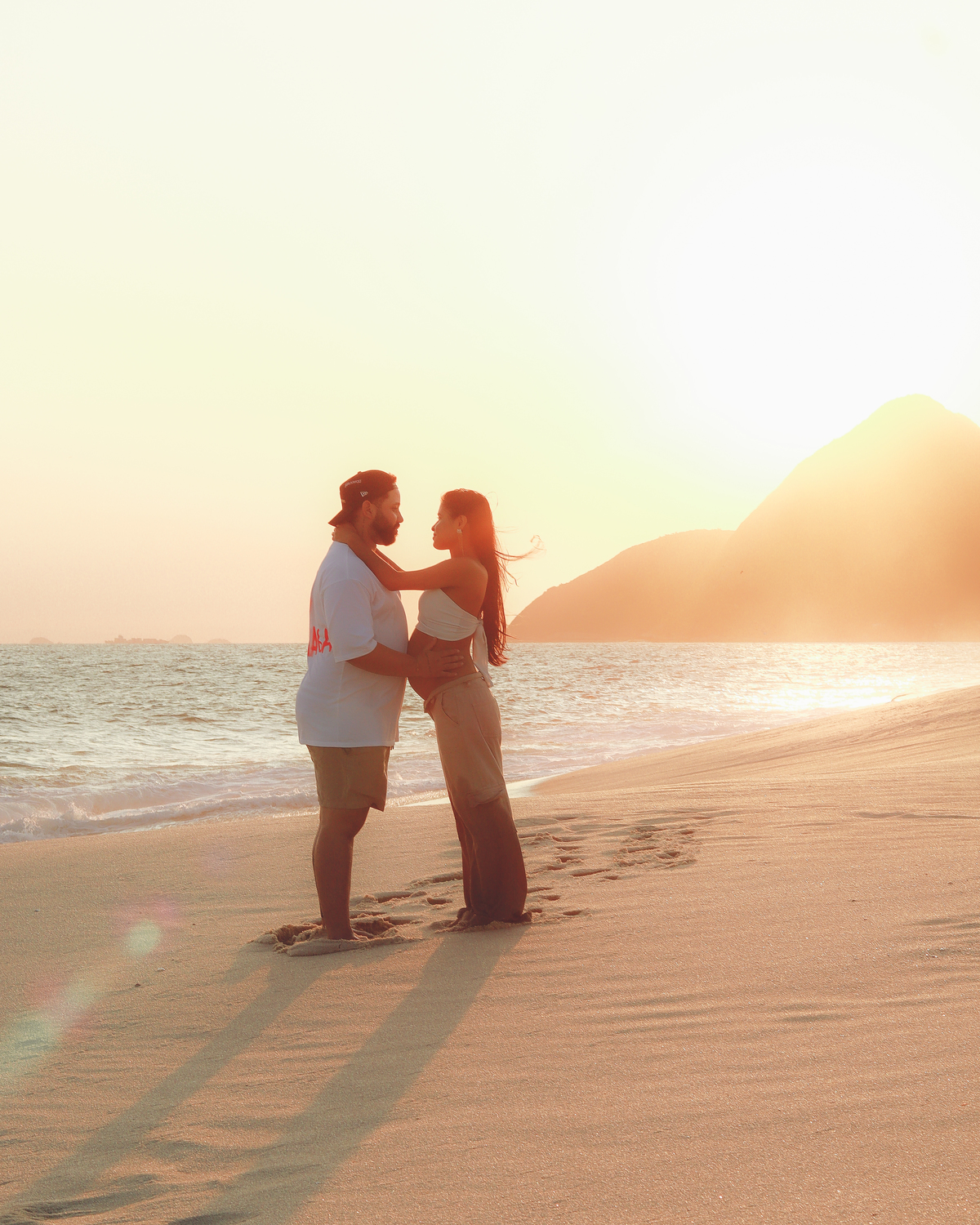 Ensaio gestante casal, um dia leve e tranquilo na praia de Itaipuaçu.