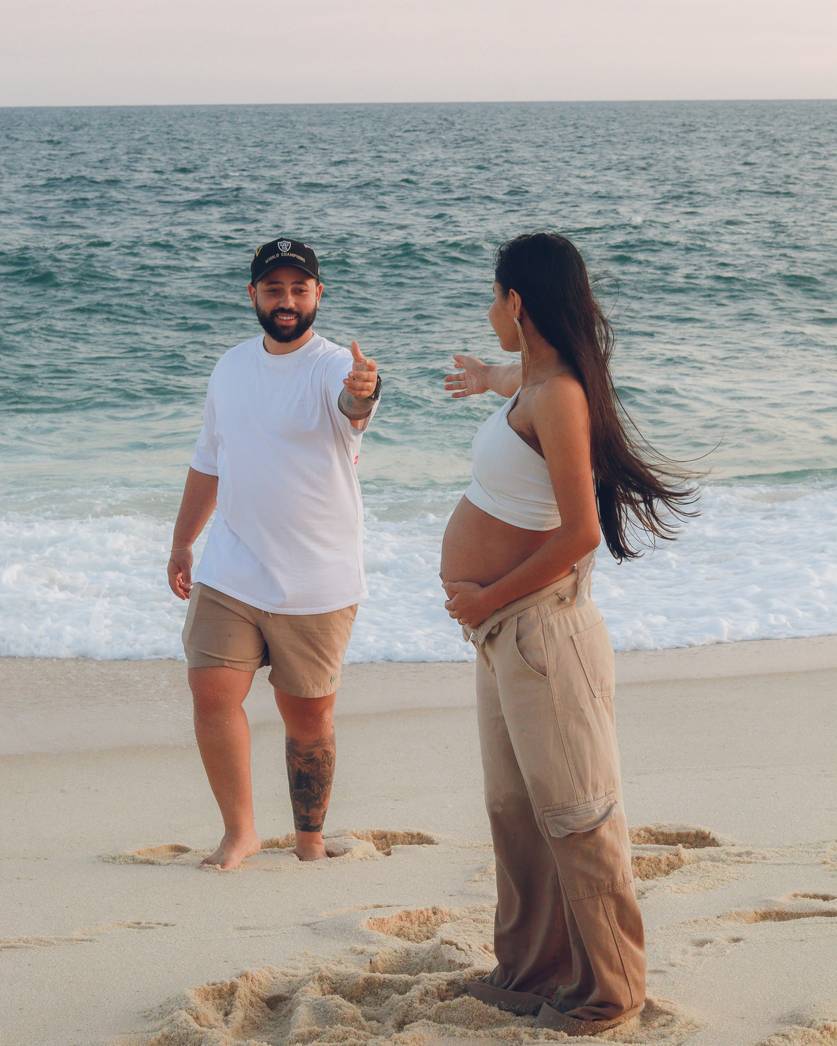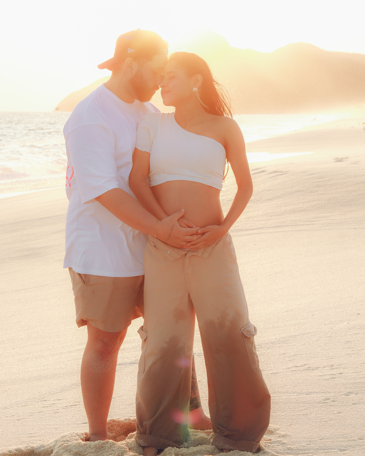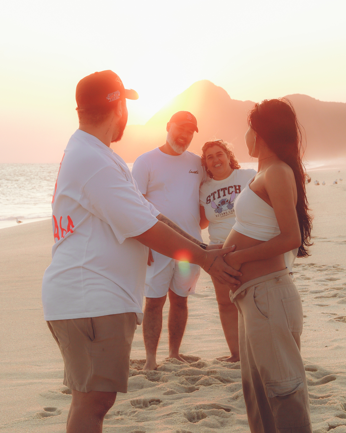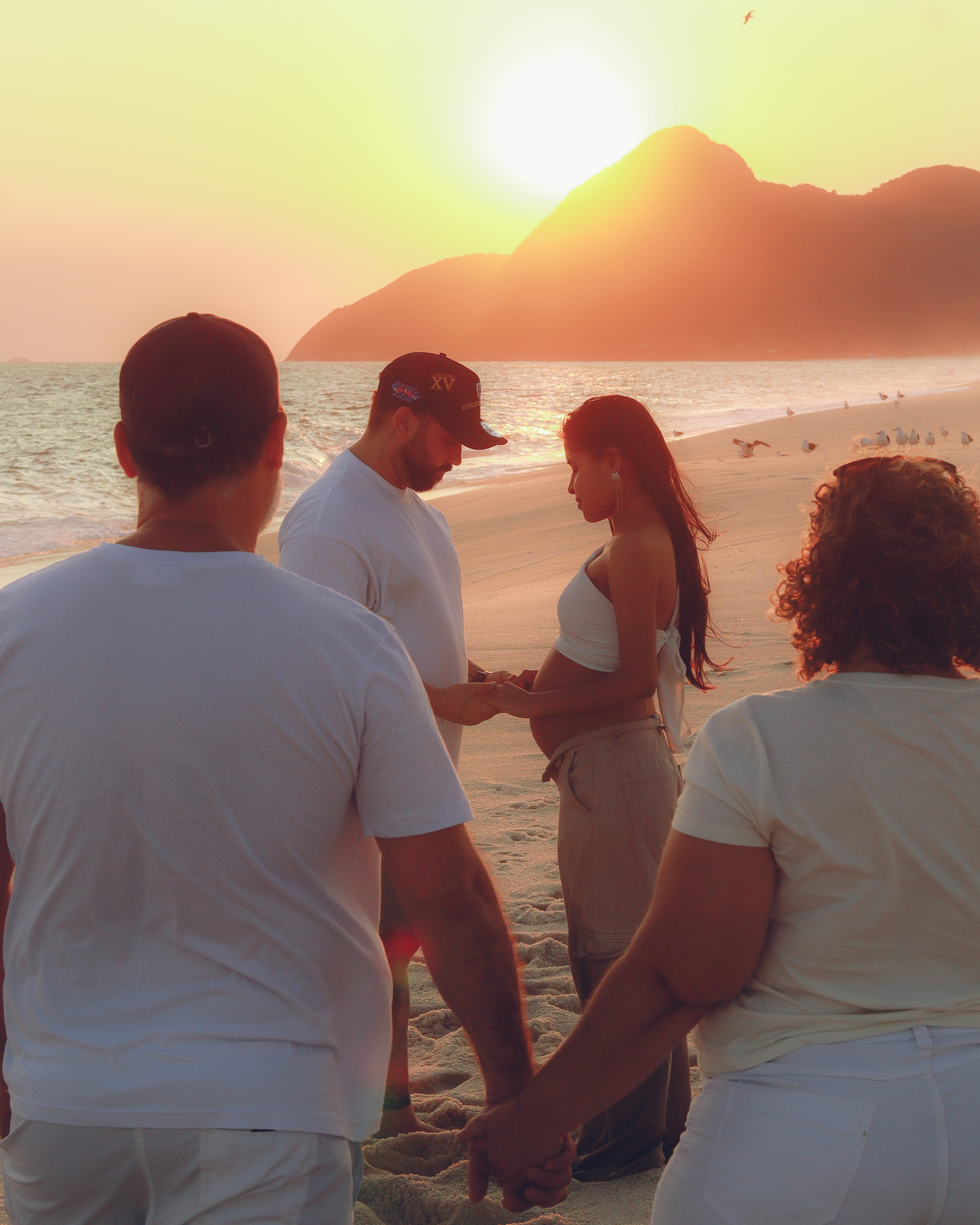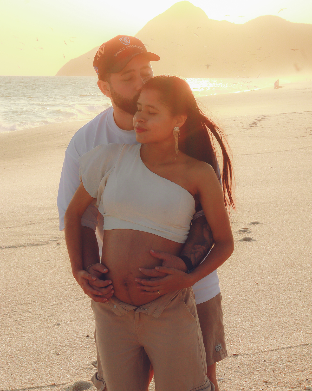 Ensaio gestante casal, um dia leve e tranquilo na praia de Itaipuaçu.